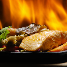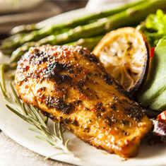 A sensational marinated grilled chicken breast in rosemary butter sauce accompanied by sautéed vegetables, baked Parisian potatoes and a choice of Mediterranean, Caesar or Garden fresh salad.