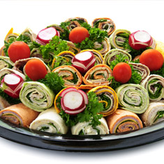 This beautiful starter for any occasion combines Meat, Vegetarian, Tuna or Cheese Wrap choices that include San Danielle Mortadella, Mozzarella, Smoked Cheddar Cheeses, Genoa salami, black forest ham, hot or mild Capicollo and Prosciutto wraps garnished with black or green olives, cherry tomato, green peppers and red onions.