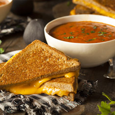 Choice of Veggie Soup (Broccoli, Mushroom, Pea, Bean) or Chicken Noodle Soup served with a Grilled Cheese Sandwich.