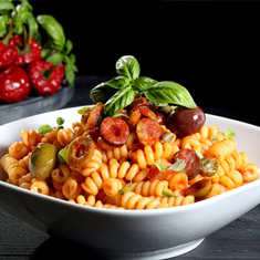 An exciting choice of Penne, Fettuccini, Fusilli or Lasagna is served with a Bolognaise or Alfredo sauce. The meal is served with a Caesar or Mediterranean Salad.